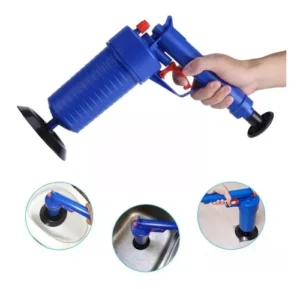 Destapador para tuberías del hogar, ayudante para descongestionar los residuos que pueden obstruir las tuberías, funciona con presión de aire permitiendo que circule el agua en la tubería, bombea desde la parte inferior y luego coloca en lavamanos, taza, e inodoro con la punta adecuada para el sitio y presiona pulsador. Es importante si las tuberías están unidas a otras tuberías tapar ambas (ejemplo: Si el lavamanos es la misma tubería del lava losa, debe tapar uno y en el otro colocar la pistola de presión.